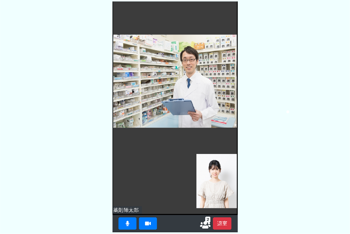 - 薬剤師様は、当システムより送信していただく接続URLを患者様に選択していただくことで、ビデオ通話機能が起動し、服薬指導・フォローを実施できます。